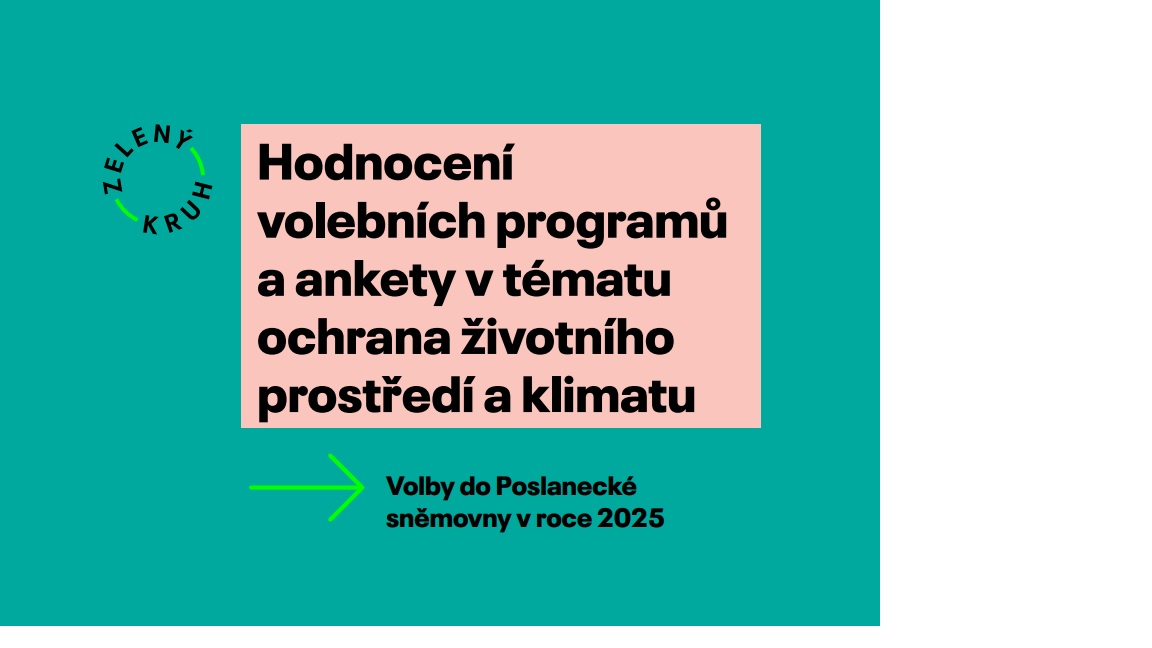 Organizace z asociace Zelený kruh prostudovaly volební programy v částech věnujících se ochraně životního prostředí, klimatu a podmínek pro fungování občanské společnosti. K dispozici jsou také výsledky ankety, v níž volební subjekty odpovídaly na otázky připravené experty z členských organizací. Do hodnocení byly zařazeny hnutí ANO 2011, Motoristé sobě, Piráti, Stačilo!, STAN, koalice SPOLU a SPD.